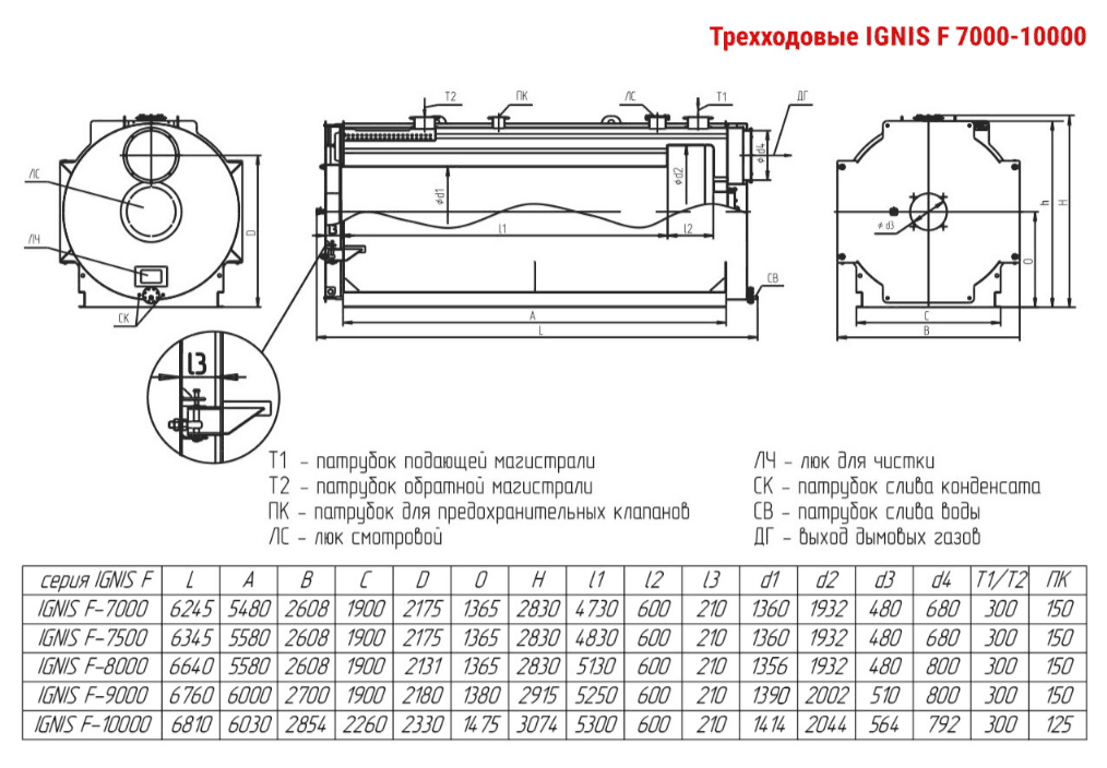 Технические характеристики водогрейного трёхходового котла ARCUS IGNIS F-10000