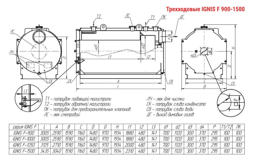Технические характеристики водогрейного трёхходового котла ARCUS IGNIS F-1500