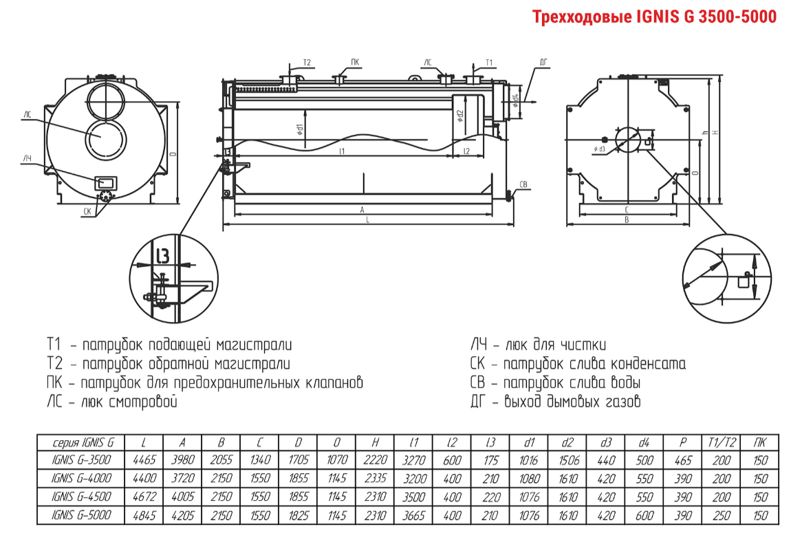 Технические характеристики водогрейного трёхходового котла ARCUS IGNIS G-3500