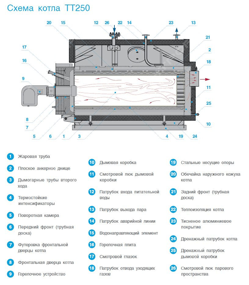 Краткое описание парового котла ТЕРМОТЕХНИК ТТ250 - 12 бар