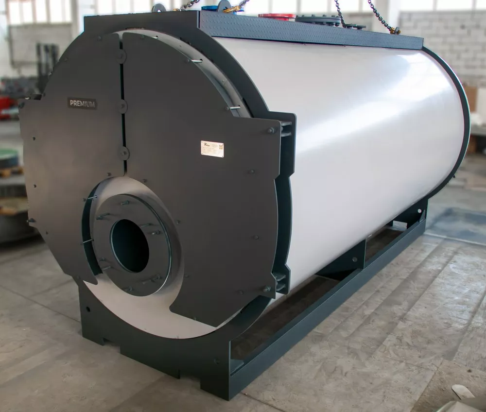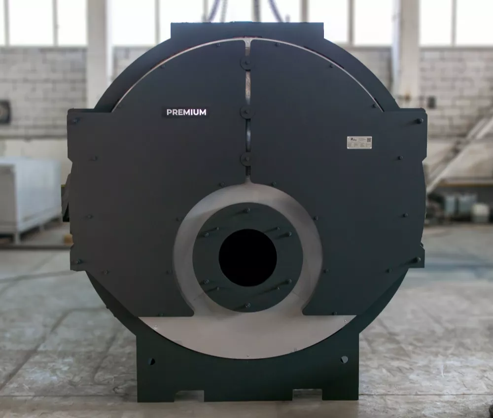 Стальной газотрубный трехходовой котел мощностью 10 МВт. В котле применена инновационная технология теплоизоляционного одеяла без использования бетона. Уже в базовой комплектации оборудован верхней площадкой для обслуживания.