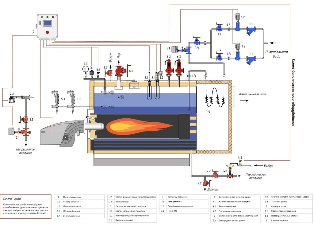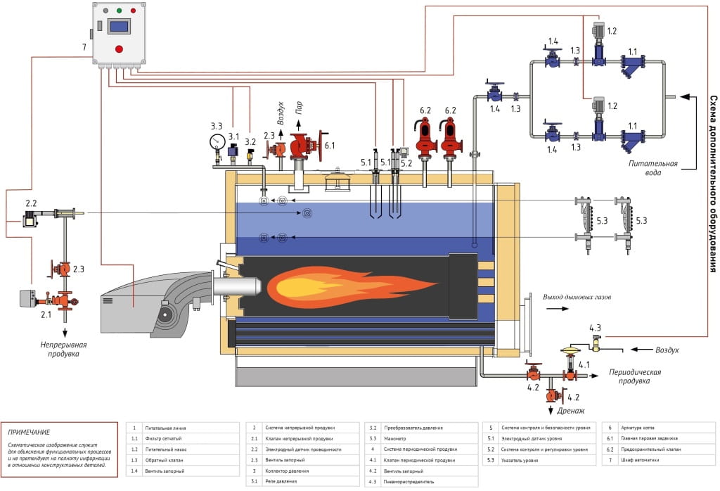 | 2 - Система непрерывной продувки | 4.1 - Клапан периодической продувки | 6.2 - Предохранительный клапан |