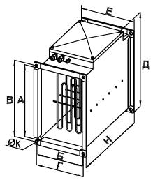 Предназначен для подогрева воздуха приточной системы вентиляции электрической энергией, требует установки узла смешения и системы автоматики вентиляции.