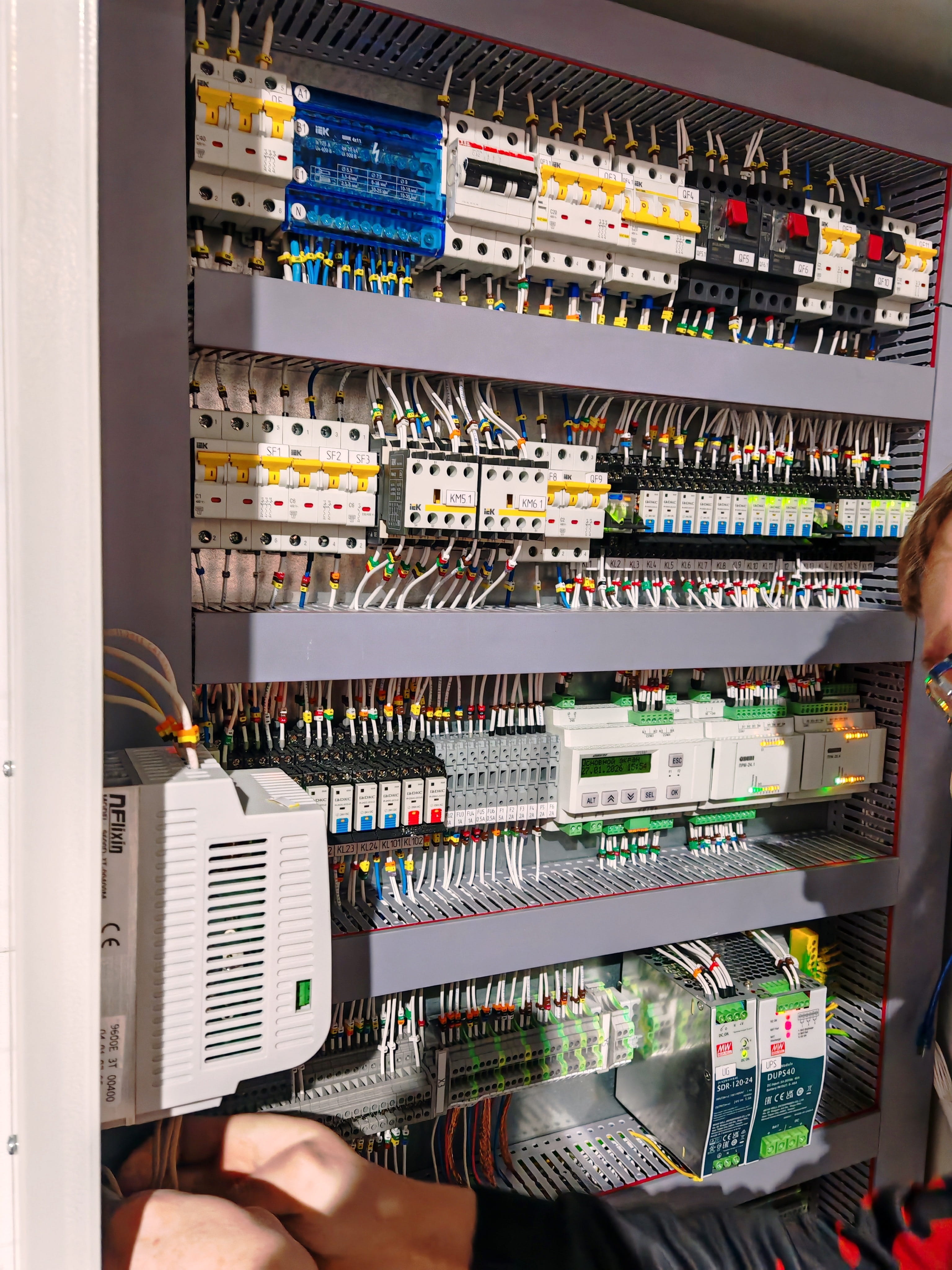 - Визуальный осмотр состояния шкафов управления, контроллеров, модулей, клеммных соединений, кабельных линий, заземления. Проверка соответствия фактических схем проектной документации.
